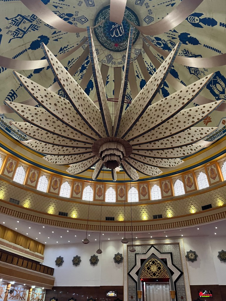 We visited the largest mosque on Lombok to get a sense of a prayer space, but it was a miscommunication with our driver that took us there when we hadn’t eaten, needed to use the toilet, and thought we were going home. With forced graciousness, we took a little tour. I was offered a covering for my feminine aspects, and we had a look at the musalla or prayer hall. Men were lying on the floor resting post-prayer. People take it easy during Ramadan. Understandably low on glucose to move. Under the artful dome with “Allah” painted in the centre, red digital clocks on the wall counted down to the next mustering of the faithful.