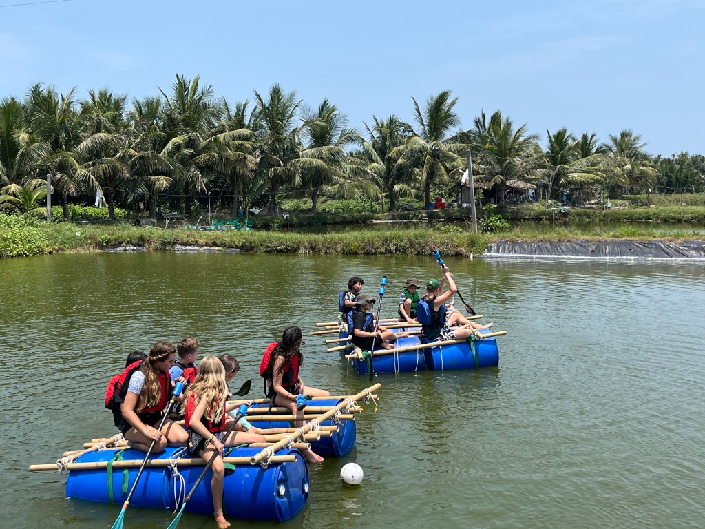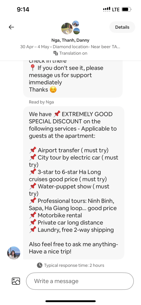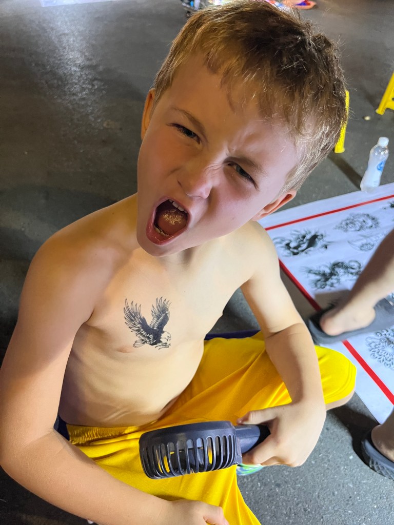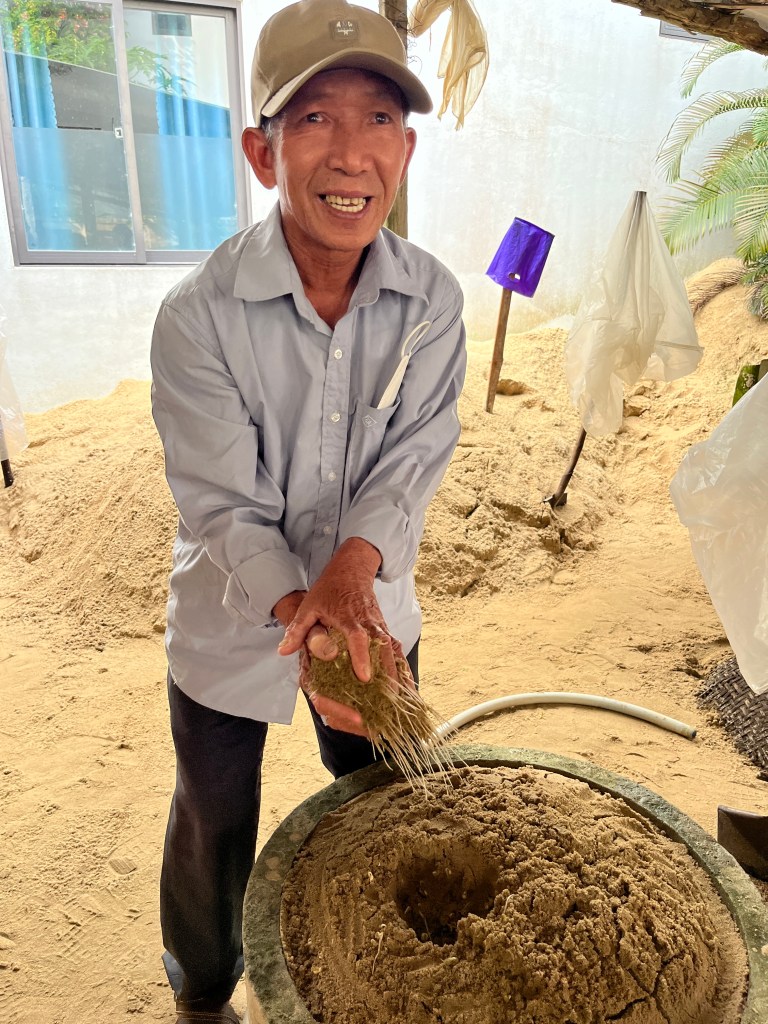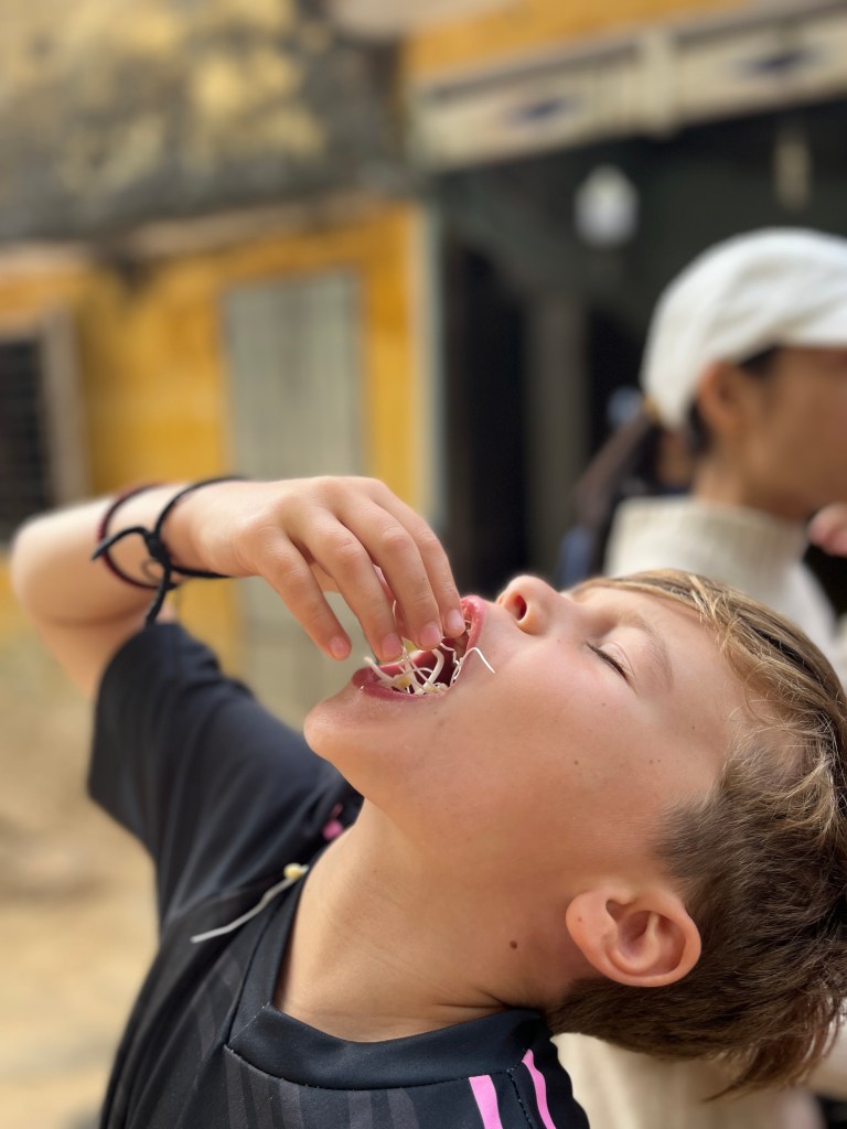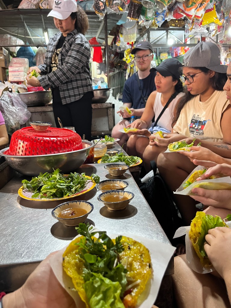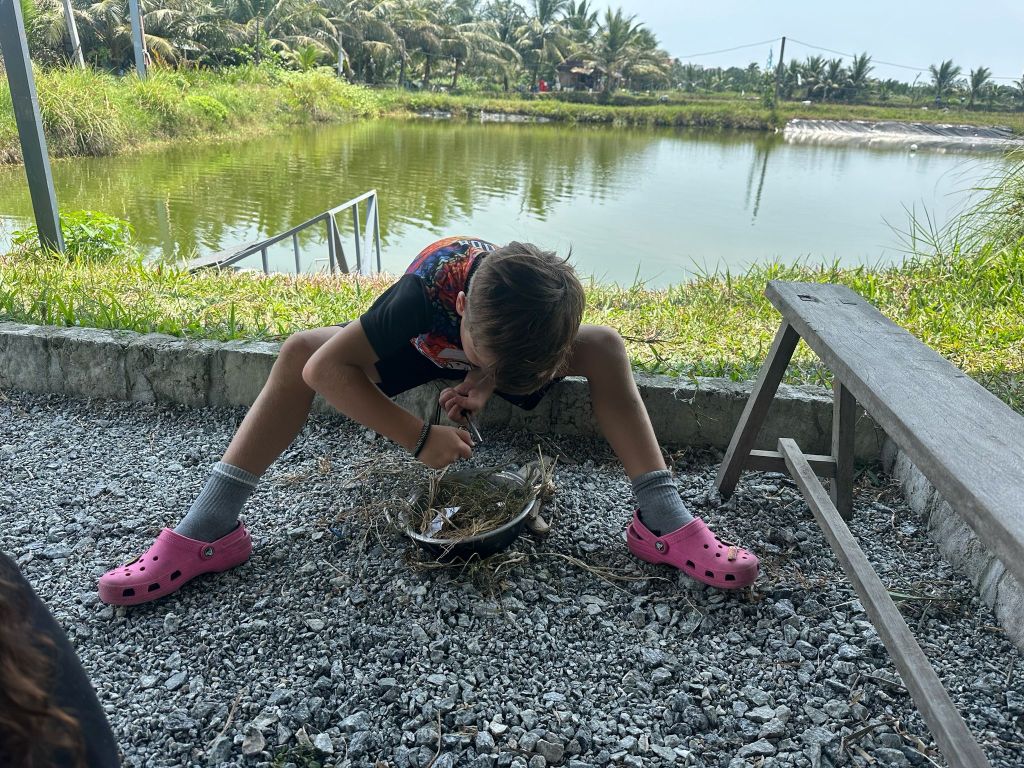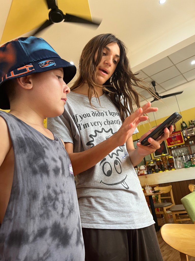 The Art of Coffee – Vietnamese Coffee Culture is not part of the late 20th century coffee craze. It’s its own thing, started in the 1850s with French colonial influence. Salt Coffee is my fav, but Egg Coffee was invented in Hanoi in the 1946 by a bartender looking for a milk substitute during a shortage. Now, it’s everywhere.Old Town’s lanterns are the epitome of Vietnam’s charm.Always suckers for glowing, flying things.Releasing a floating lantern is supposed to bring good luck. They use these little baskets on a stick to lower them into the river.Hanging in an OIt’s a dream-like atmosphere… if you can close your ears to the chaos. By BoatWe did worry about polluting the river, so we didn’t buy any lanterns, but we were handed a couple by our boatman.There has been a bit of an obsession developing around tattoos, so the boys each got a henna one.The eldest took a video-editing workshop from an Italian world-schooling teenager. It was great, and now he is making his own videos and exploring new features and concepts.15 Years MarriedA South African man, who now lives in the Granite Hills in Australia, has a wine bar with a nice variety of wines and a killer cheese platter. (I so miss cheese.) Seemed a good choice for a sneak-off anniversary happy hour.Waiting for a Grab ride. This “ride-hailing” app is such a game-changer for travellers. Much like Uber, you don’t have to have cash or physically find a driver. You don’t have to worry about change or negotiations or being over-charged. It’s made running around Hoi An so much easier as a parent. The driver usually arrives in about two minutes. So grateful for this development. (This photo was actually taken because I think my journey to being shortest member of the family is speeding up. I’ll be passed soon.)Just a house on our little lane, stylin’ their own funky style. I love it.This yellow is the colour of almost all the buildings in Old Town. They wear their patterns of age with such panache and truth, more beautiful for their ownership of these markings of Time.Thich Nhat Hanh, Buddhist monk and peace advocate, is from Vietnam. He wrote the book No Mud, No Lotus: The Art of Transforming Suffering. I think of this a lot.While I used to see my boys hunched over in the hypnosis of screens, now I see them hunched over in curiosity for life. Such a win. No words.It’s all a feast for the senses. This coffee is special. It’s Weasel Coffee, or Kopi Luwak. These weasels, Asian Palm Civets, eat the coffee fruit, and then poo them out, their digestive enzymes having dissolved the pulpy casings, leaving the bean intact. After being thoroughly cleaned (we hope), the coffee is supposed to have an extra smooth taste. The little one was not impress with this bowl of weasel poo. The older two took a survival course which involved shelter-making and fire-starting. Yes, we paid for this.They also had a raft-building competition. The boys were impressed with the kids who had sailed for a year and could tie knots without looking. Then they raced the rafts. The middle one’s won.There was an afternoon of water play, including paddle boarding and a ropes course that the little one joined in on. Maybe I should feel bad, but I take great joy in watching these hell-raisers strain and struggle and then plop in the water. Am I not supposed to share that? Reverence for Ho Chi Minh, The Great Leader. This month, on April 30th, the country will celebrate the 50-year anniversary of “Reunification” after Vietnam’s civil war. Interestingly, we will arrive in Hanoi on this day. The Vietnam Military History Museum there claims to offer “deep insight into Vietnam’s great victory against French colonialists and American imperialists.” I can’t wait to take the boys.Goldfish in a cafe table. I think this is Worldschooling in action. Not sure. (Neither is the boy.)I miss teaching English and defining the edges of usage and meaning. We had a good laugh about this message from our Hanoi AirB&B host. You cannot say one “must try” the airport transfer. And “2-way shipping” of laundry is just not quite right. I just love what is revealed by misusage. School at our place.The office this month. With a riverview!We’ve had our first illness. Poor Dad. Luckily (I think), the pharmacy gave him some antibiotics over the counter. Not a great practice in general, but hopefully an easy fix for us. (grimace) This decongestant may be helpful too?StreetfoodMagic Hour in photography is just after dawn and just before sunset, when the light is soft and golden. Hoi An, with its lanterns and market lights, must be one of the best places in the world to enjoy this.Of course, the one photo where all my people look great, I’ve got my eyes half-closed. Oh well. Memory captured.Talk about light-play.Ancestor worship altars are set up on the street and in homes and business (which are often one and the same). Offerings of flowers, food and drink are laid out. Incense and candles call deceased relatives to the table.This was our perch in Old Town to watch the world go by. We gave the boys small amounts of cash, and they had a blast bargaining at the night market. They kept running back, laughing out tales of their great bartering skills. A little game of balloon volleyball with local kids on the walk home from dinner.A popular Hoi An attraction is to take the coconut boats through the local “coconut forest.” The little one is resting his arm on one of the coconuts. Not the “coconut” you imagine. These plants make roofs, the classic Vietnamese hats, as well as many other products.We felt a bit guilty being paddled around by an elderly couple. They did give us a paddle to pitch in, eventually.Our guides, who spoke little English, were the parents of the owner of the restaurant that runs the boat tours and cooking classes. They were quite skilled in making various charming forms from the palms.Rockin’ the Palm FashionThis is the moment I 