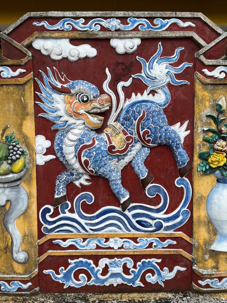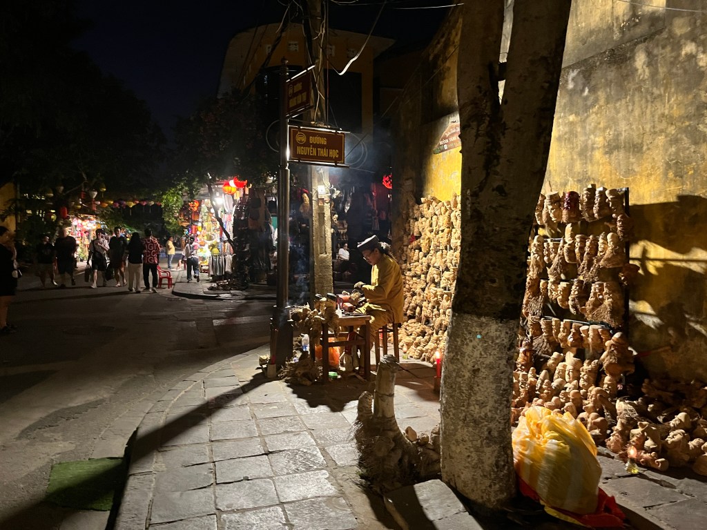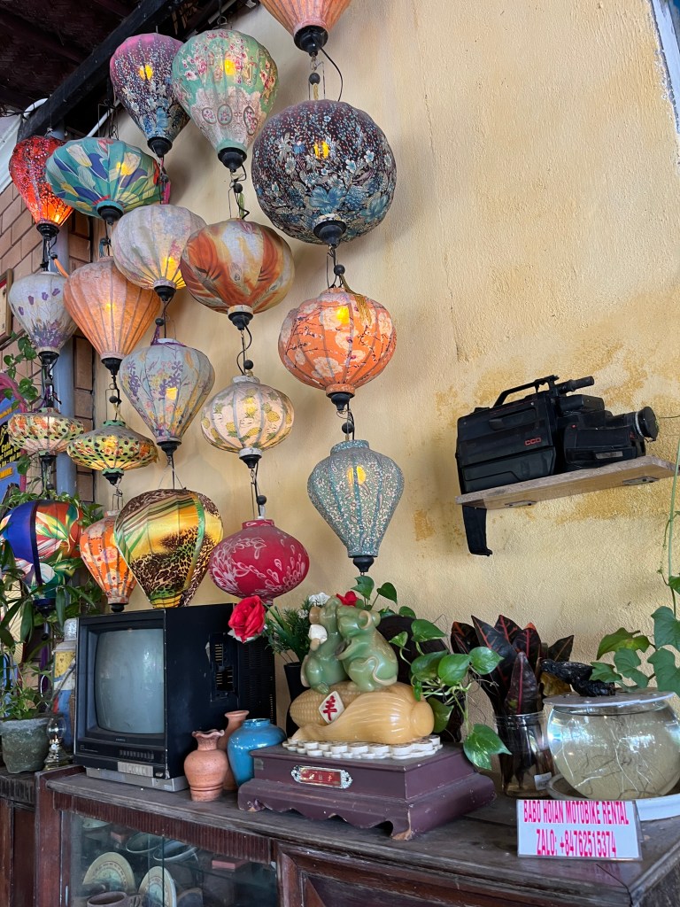 It is a disregard for what one would normally find an interference of aesthetics. There is an unseeing of ugly that is achieved by a thoughtful inclusion of purposefully artistic elements. It’s the beer box turned planter. It’s the fishing net turned squash trellis. It’s the old pallets turned into a wall. It’s in the patterns of broken tiles, in the piles of coconut husks, and in the quirky café décor. It’s in the colourful rows of fishing boats, in the luminous floating lanterns, and in the steaming-hot bowl of Pho. It’s in the strings of colourful flags reaching across alleys and in the textures of tropical leaves. It’s in the kaleidoscope walkways of fruit markets, the bright twisted wires of fluorescent market lights, and the troops of manikins guarding the omnipresent tailor shop storefronts. It’s in the rust, the water stains, the dripping faucet algae, and the lichens adhered to the walls. It is in the incorporation of objects used beyond their original intention. Everything is reused, and everything becomes more beautiful in the re-usage. It achieves a resurrection of life more beautiful than the original assignment of an object’s purpose. There is a sense of carrying-on in these artistic gestures that feels like the undying essence of Life itself.