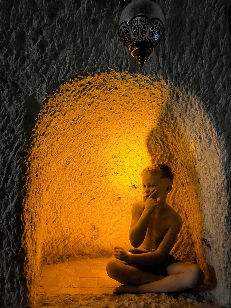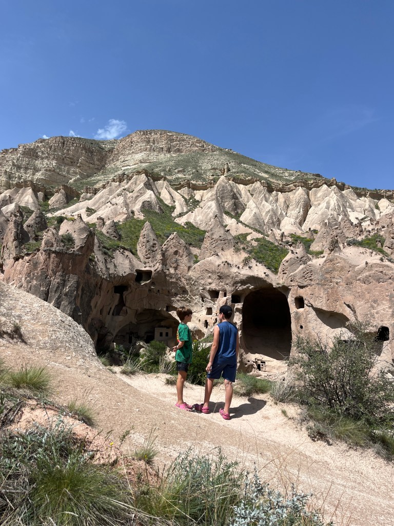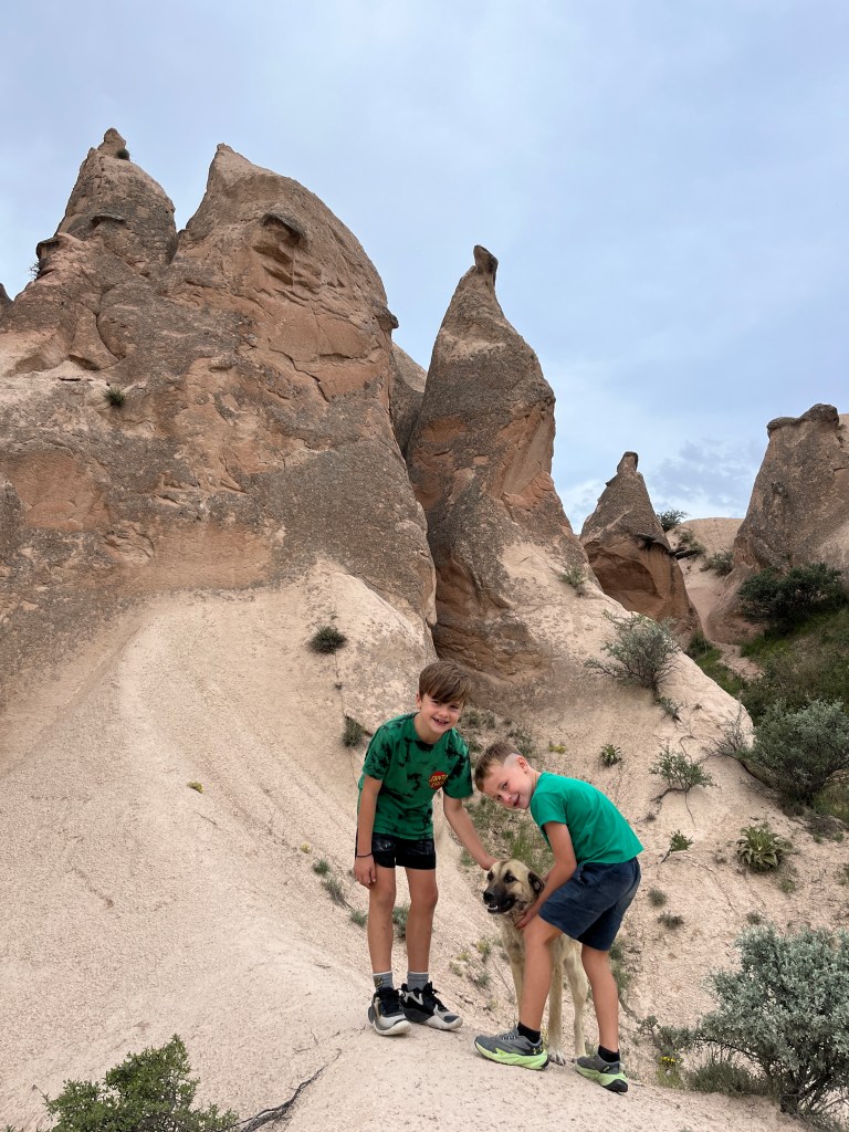 First of all, we learned that there are two airports in Istanbul, and my partner booked our rental car pick-up at the wrong one. Funnily, it was not only the wrong airport. Thanks to Turkey’s unique geography connecting Europe and Asia, our car was booked on the wrong continent. We had to catch a taxi across the Bosphorus Strait to the European side to meet our rental company. These men were our heroes when the taxi driver tried to take advantage of our little mistake. As he demanded far over the verbally agreed price, these men used Google Translate to discretely tell us we should not accept this and that they would call the police on our behalf.We had a night in an airport hotel, which was near this cage filled with soccer playing children. Our boys jump right into these sorts of things, and the local kids here were super welcoming (though some were a bit over zealous). A family of Syrian refugee kids were very keen to communicate in Arabic through Google Translate. A lot of locals have pulled out this app to chat, actually. It’s very endearing.These open and friendly interactions were a balm to our Egypt-whipped spirits.Hitting the road, the green hills were so gentle on the eyes. We were surprised by how beautifully lush the landscape was. Of course, Turkey is a large country (1.2x bigger than Texas), so there is quite a lot of eco-diversity.This is a common site in Turkey, we would find out. This is the tea they serve. These charming glasses in little dishes are everywhere. They are delivered on trays around the Grand Bazar in Istanbul. They are seen empty, sitting window ledges. They appear on the table after meals or while you wait for your take away. They are even offered in brief encounters in shops. Turkish people can be observed sharing friendship over them on street corners, at little tables in alleys, on balconies, and on the stoops of storefronts. I’ve grown great affection for their distinctive curves and warming contents. It’s always the little details that steal your heart.This seaside town was our first destination. Like a layered Russian doll, the castle here was built by the Romans, the walls by the Byzantines, and the gates by the Genoese in the 14th century. We stayed on a little island called Boztepe (meaning “grey hill”) up a great incline at the end of an ancient road. There was a bridge from the mainland to Boztepe that was built by the Romans, heavy stones of varying eras hinting at the different faces it must have had over the centuries. Lots of Turk tourists were always taking photos there, so we always had an audience as we carefully fit our car through the narrow gate across the bridge. Of course, the local cars zipped through like lightening, making us look like fools. (We just owned it. It’s a rental. What can you do?) There was also a lighthouse on the island. From bed, we could watch the light drawing circles in the sky outside our window. There was also supposed to be a temple to Poseidon, but we never found that.Look at this lovely shot. When the middle one saw this photo, he said, “Oh, wow. That was when we all stopped acting like idiots for a second.” Travelling with these boys is like walking out the door with a pack of spinning tops. They bounce off of everything and everyone, including each other and us. They climb. They jump. They hurtle. They balance. They kick balls and play fight. They engage with cats, dogs, shopkeepers, tourists, and locals- in languages local, native, and gestured. We get a lot of stunned and speechless expressions. Some appalled and disapproving. Mostly smilies and the look of three-boy sympathy. They are a blur of boy, and they encircle us wherever we go. It’s maddening, and, I remind myself, temporary. This chapter is so fully full-on.Amasra is on the Black Sea. Of course, we had to figure out how it got that name. Multiple theories. First, the Turkish people use colours to represent the cardinal directions. See the stolen diagram below.https://www.ibalushi.com/blog/2021/8/13/colours-associated-with-cardinal-directions-turkishAnother theory is that the great depth of the sea (over 2km in some places) has led to an abundance of hydrogen sulfide on the bottom so that anything that sinks deep into the water emerges covered in a black sludge. Another theory says the sailors called it the Black Sea because the severe winter storms turn the water so dark it looks black. Perhaps, all of the above? Cats are everywhere. It makes for such a different vibe than the Asian cities of roaming dogs. These haughty, lounging creatures create an atmosphere that feels casual and welcoming to the foreigner. I mean, if feline squatters are fed from people’s cafe tables, surely they don’t mind us harmlessly poking around their town. A Turkish Crab (We spotted some real ones too.)The waves eat the sun here.Amasra is famous for its quirky styles of decorating their gardens. Plants in boots is a recurrent theme.Murals would appear in the most unlikely of places. Turn a corner, shoes are hanging from a tree. Turn the next, nets of fishing bobbers would be strung above an entrance. It was an awesome little photo walk.Such interesting buildings to consider.A bazillion jams were for sale at the local market (in precarious stacks!). All the stalls seemed to sell exactly the same thing… including cheese! We are back in the land of cheese. Hallelujah! And affordable strawberries too. What a treat.We didn’t love the soup options. This was the broader gate.We learned very early that the restaurants work differently here. More than a few times we have seen the restaurant staff run off and return with a plate of food from another restaurant or ingredients bought at the local shop just for our order. Also, many places don’t have menus. At this place above, the young woman showed us a Google Translate message that said, “You should look at the food.” We went into the kitchen and had a look at the two options for the day. Bot