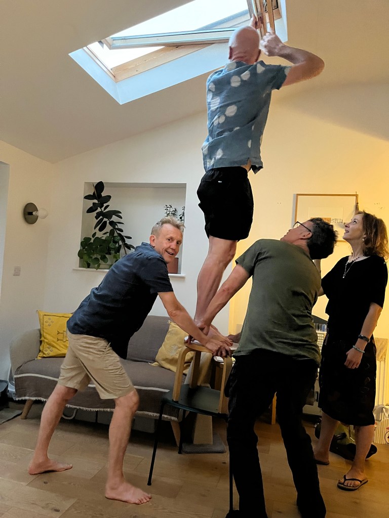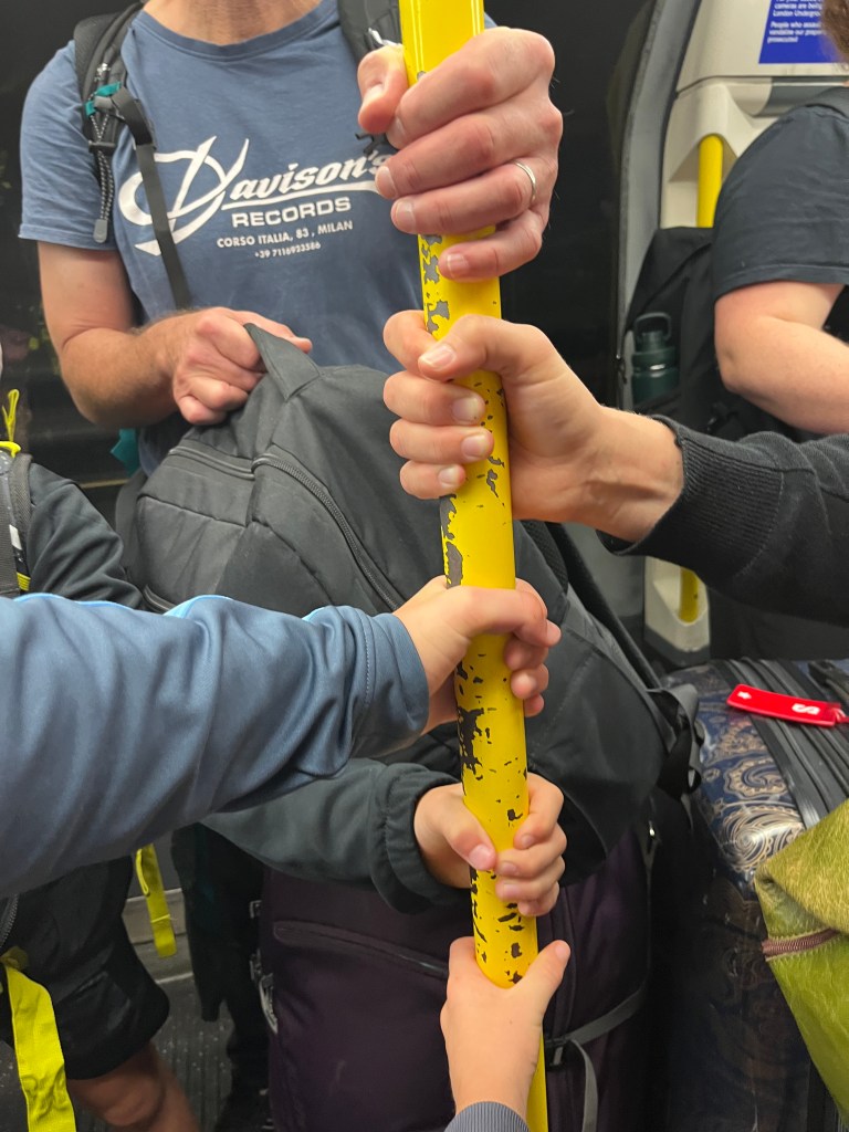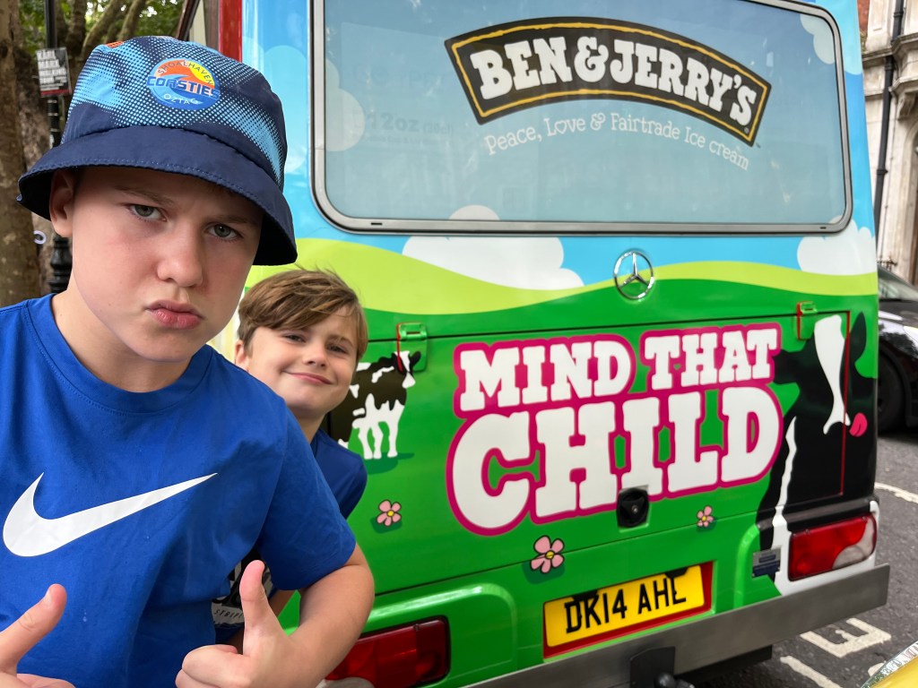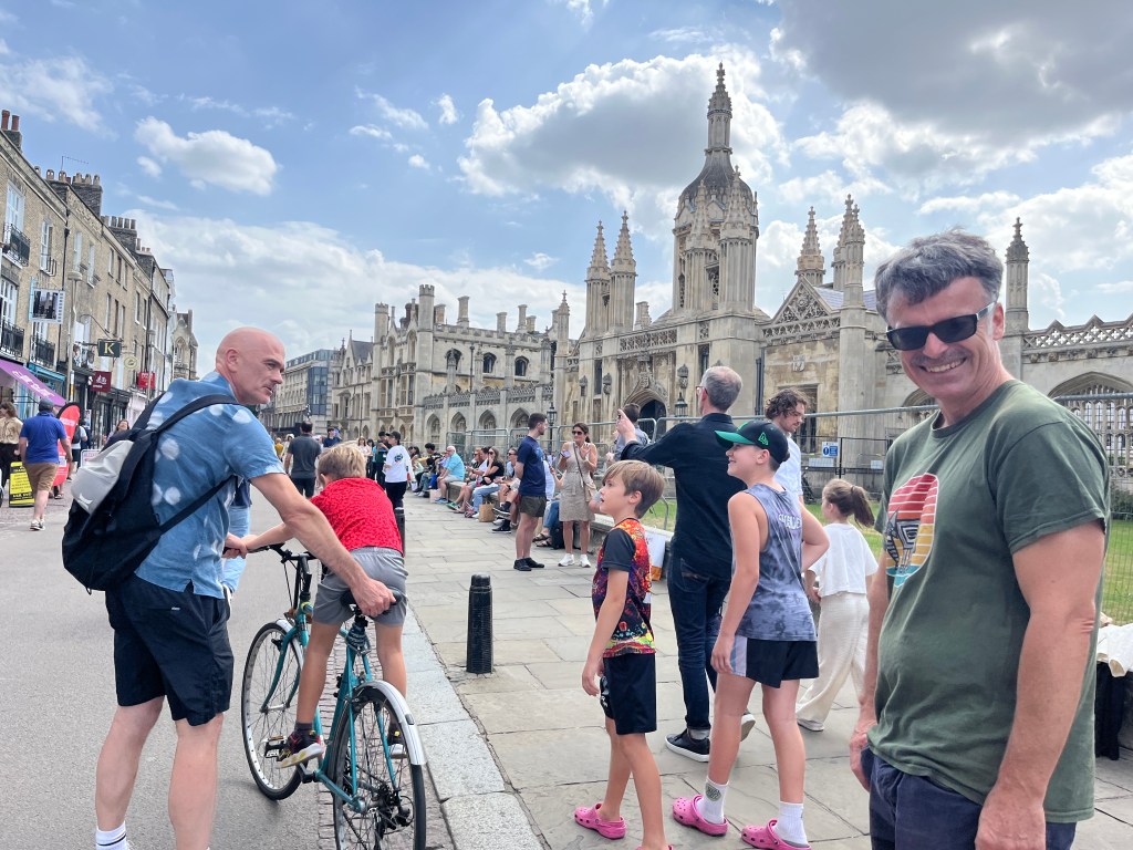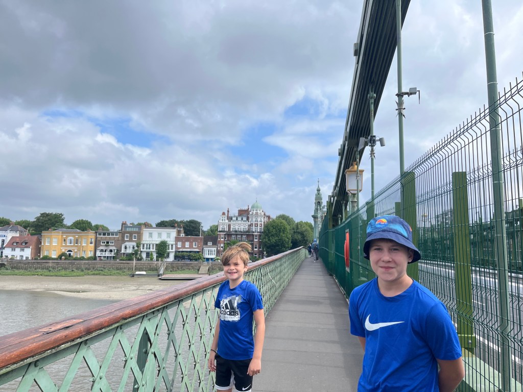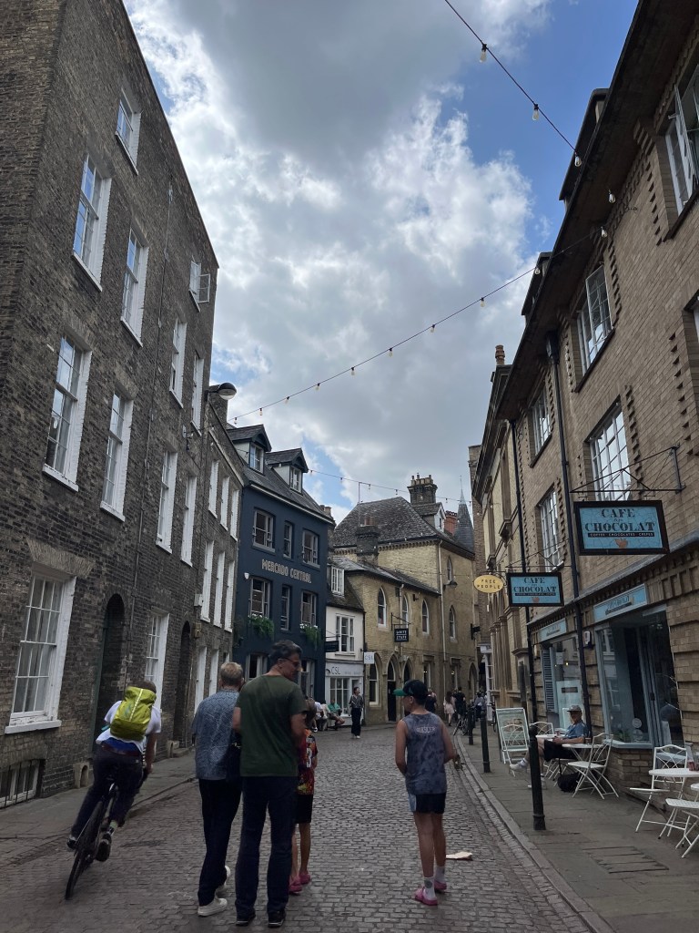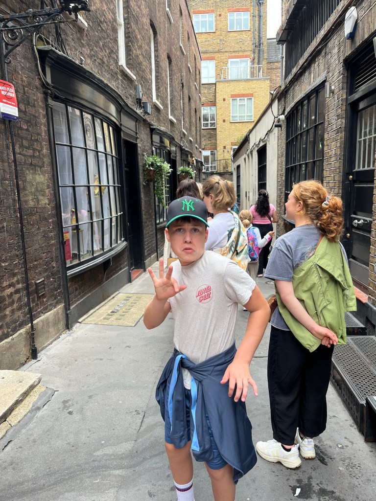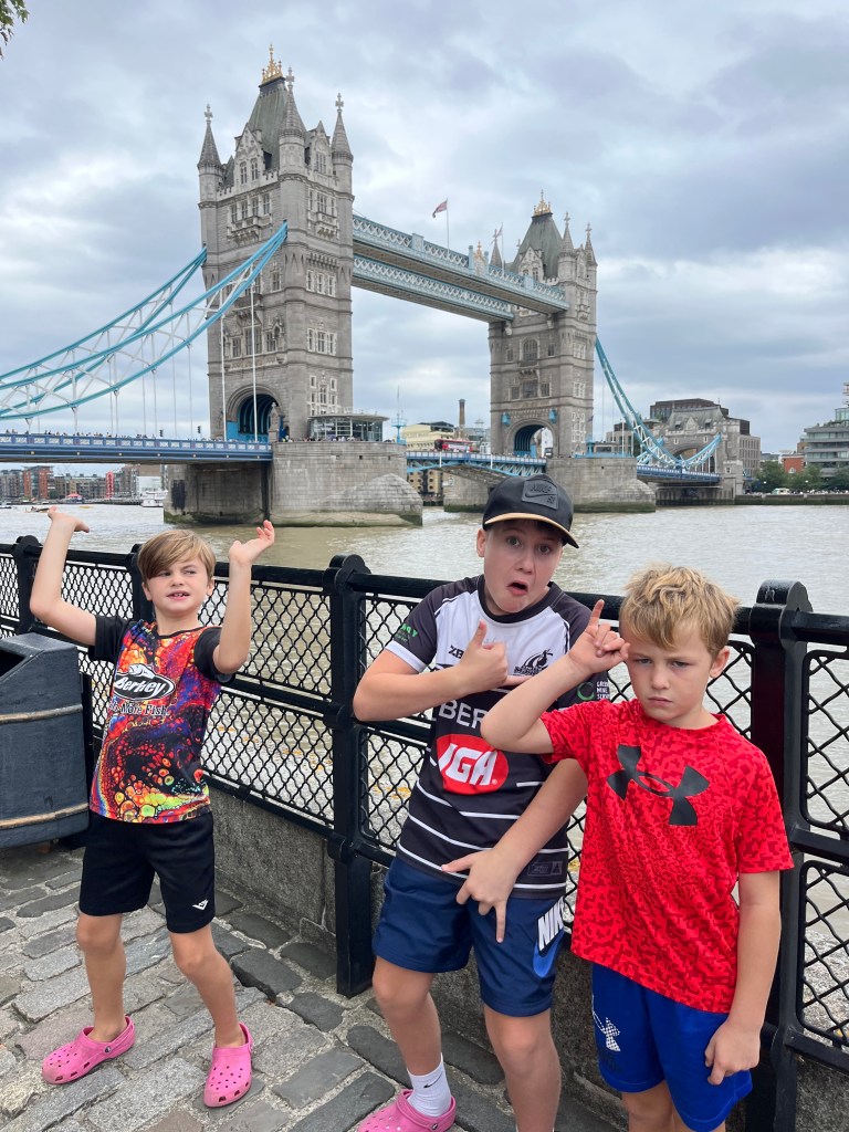 My partner’s uncle and family were a total delight and very skilled at adapting to our rowdy crew… Dougie, the dog, helped bridge the gap in our “normals.”The boys were very impressed that London dogs do 1,000 pound poos.The charming and historic Hammersmith Bridge was walked many time as it take us to the Underground Station. We got to observe the tidal River Thames at many stages.Scary, these two! Good world-schooling to learn how to navigate London’s Underground with its elaborate map. There are a few concepts that are fun to explain and then practice. We’ve been talking about finding our favourite restaurant, Chipotle, for awhile. London is our only stop that has it. It’s like Mecca for our family. A religious experience. As we relished our favourite dishes, we watched London’s kaleidoscope of humanity walk by, and we talked about how small towns and small ponds of all kinds can make you feel like you don’t fit in, but it’s important to always remember that sometimes that just means you haven’t found “your people” yet. Big cities like London are where many people find their groove in life. There are certainly all sorts walking these streets. The boys loved it and might make it a home one day… who knows?Classic shot.The British Museum entrance requires the wide lens.At the admission-free, totally-packed British Museum, we had a nice wander around. This is a replica of The Rosetta Stone, which you are encouraged to touch. “Captured in Egypt by the British Army 1801” and “Presented by King George III” are inscribed on it. We discussed the means by which much of this museum’s collection of artefacts was procured by British imperialism. It fit in with all our conversations about French, British, and Spanish colonialism we’ve discussed so far. I didn’t really understand things like this at their ages. I’m glad they are developing this bigger picture of world history early.The Rossetta Stone itself is famous for helping to decipher Egyptian hieroglyphs because it had the same message in three languages: ancient Greek, Egyptian hieroglyphics, and Demotic. As hieroglyphics had been out of use for centuries, their meaning had been lost, but this message, which was a decree on behalf of King Ptolemy V of Egypt about honouring him and granting privileges by a council of priests (or something), allowed them to unlock the meaning of the mysterious pictographic script. The writing is tiny.I had never really appreciated the jawline of these great stone statues from Easter Island. The Moai, made of monolithic volcanic rock, are still a wonder because their transportation across the island back in 1250-1300 CE is an engineering mystery. And they look cool. They command reverence. Must be the jawline.This guy, who doesn’t want to go anywhere any more, was willing to hit the local Hammersmith pub with me a couple times. Coke and hot chips. Good bonding time. The news imagery on tv about the humanitarian crisis in Palestine gave us some conversation points to consider.Almost as soon as we arrived in London, we drove off to visit some good friends in Cambridge, and our pal there was ready to roll out the red carpet for our crew. Big time. We feasted like kings… better than most kings, I’d wager. These are the massive steaks for our dinner, but first….It was the lunch that untied our shoelaces with total awe and delight! Our friend is an owner of Mercado Central (the dark blue building we are heading towards). It’s a very gourmet Spanish restaurant, and no detail was spared. Wine, dessert, monkfish, Spanish jamon, shrimp, croquetas like we’d never tasted (and probably never will). Wow! This restaurant is seriously skilled at delivering magical dishes. We all agreed it was easily the best meal of the year. Perhaps a lifetime. The Madrid expat crew reunited. Joining us left is my partner’s BBC cameraman and good mate, who is also now in Cambridge. With good friends, the affection flows so easily as if no time has passed. This was such a high point of our trip. (My partner has a moustache at the request of the boys. It is gone now.)And our boys are so good at jumping into the adult friend vibe. I knew these two would hit it off. After our amazing lunch, we had Cambridge to conquer. Clearly, they were born for such endeavours. A bicycle helped get the little one rolling again. Feet dragging is a literal thing with him.Punting is something I’d never heard of. It was described like the canal boats in Venice being propelled by a driver with a long stick. That’s what it was. While our boat was booked, some of us watched watercolour landscapes emerge from blank paper. I’m not sure our observance was completely welcomed, but the boys offered lots of praise and delight!At least one among us knew how to captain the “punt” (boat). Thank goodness.Happy to be a passenger.Punting is a beautiful way to see the buildings and bridges of Cambridge. “The College Backs” they are called.You see. Very enjoyable.Until your wild children decide it is much more enjoyable to jump into the water and swim around a bit, boarding other people’s punts, dancing on the front of ours, and starting splash fights with other more lively punt crews.It was quite the experience to be, once again, the mother of “that family.”The boys were, as always, very good at chatting people up. The man behind us was punting around his parents who were visiting for his graduation for his physics doctorate. The boys chatted with this scholar as if he were a soccer mate.Back at the house, our gourmet-lifestyled friend rolled out the second act of culinary delights.Our eldest was keen to learn all he could.A dragonfly needed rescuing from the skylight… and I could see all of these men as their 13-year-old selves in this moment. What beautiful humans to reunite with. Now we just have to plot the next reunion… which seems impossible to fathom at this point. Unless they come to us! (hin