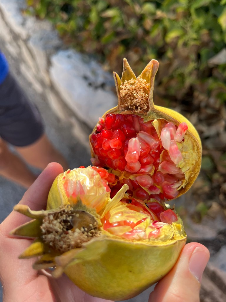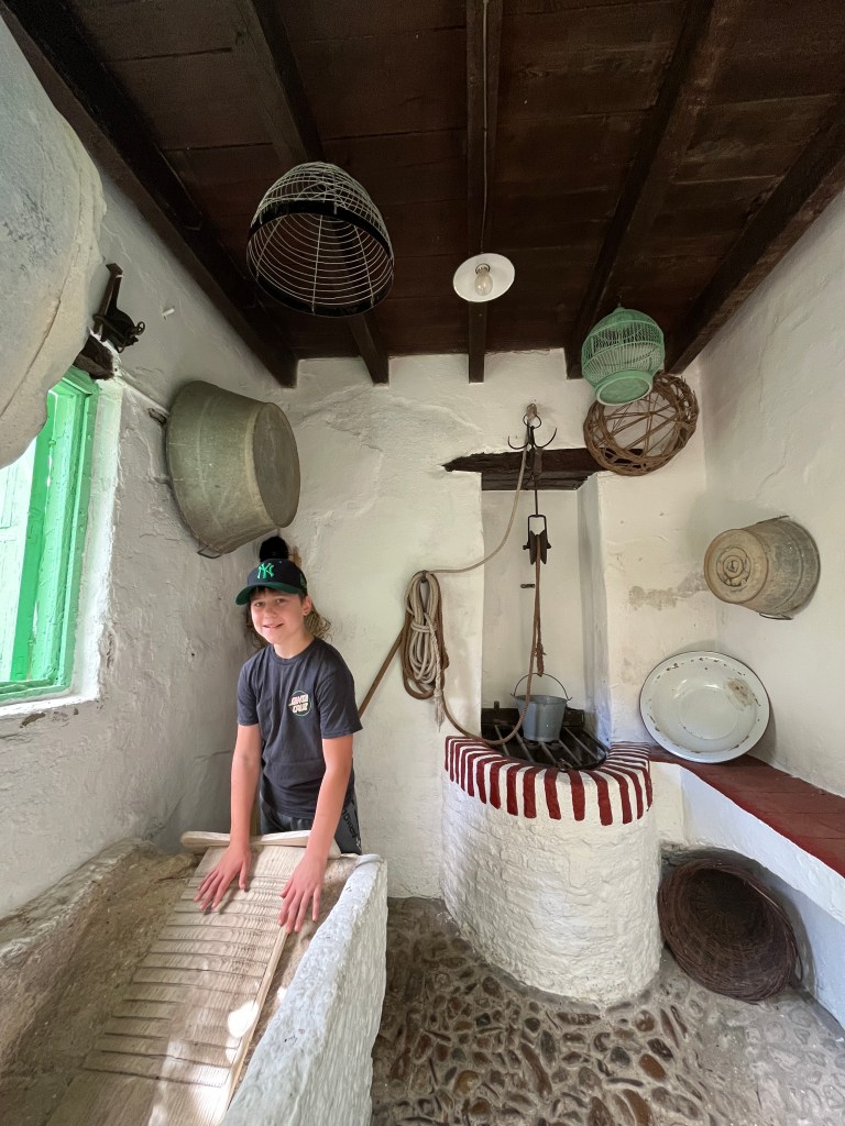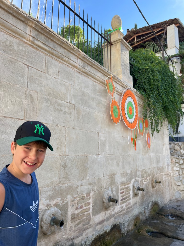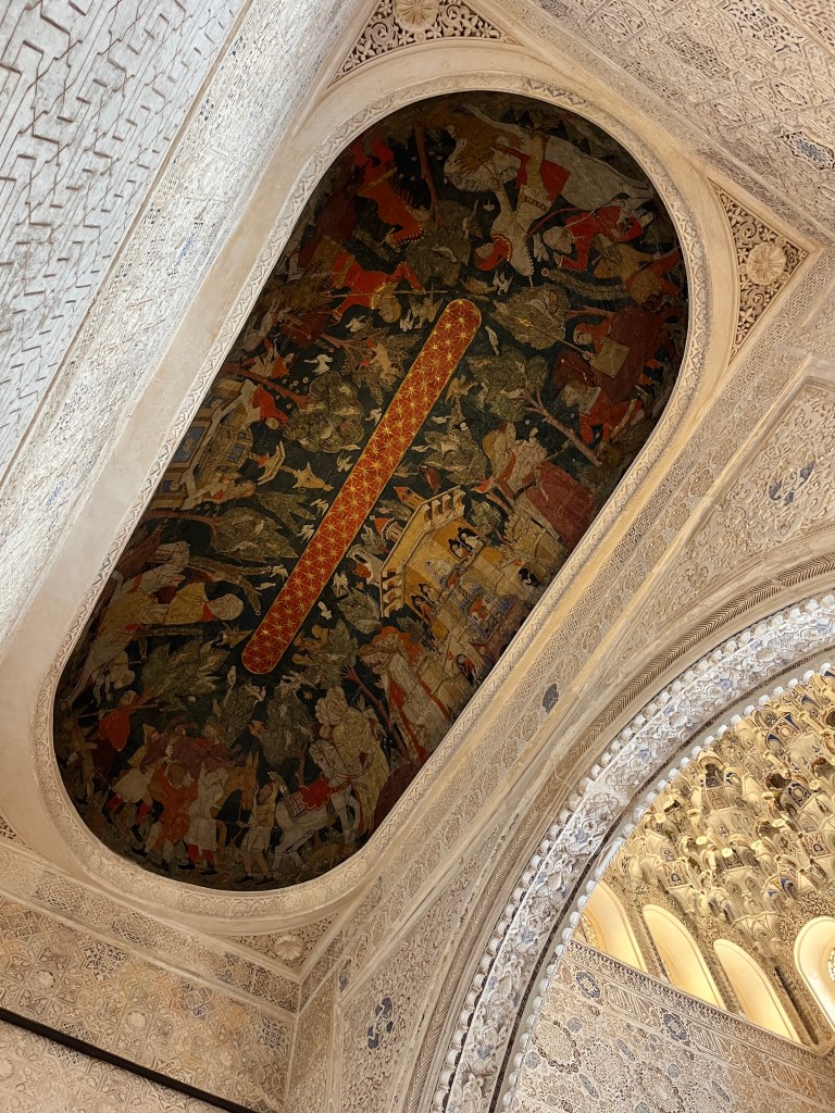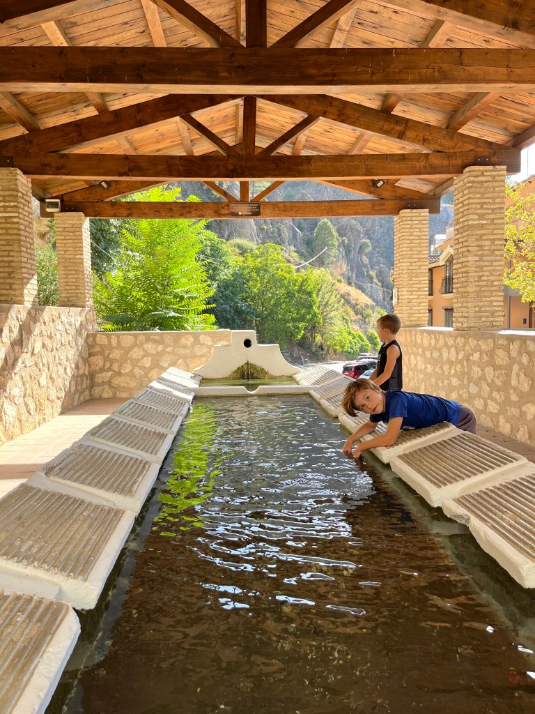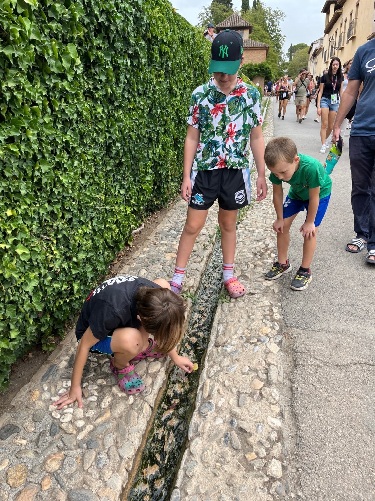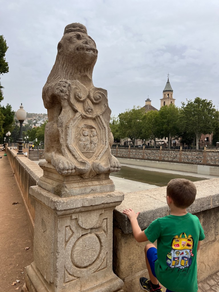 We have been houseguests in Germany, England, Norway, and now Spain, thanks to a beautiful family we have not seen in over a decade. We were very warmly welcomed by our friends in Córdoba last week, and their efforts to show us the beauties of their city and the delights of their cuisine were humbling. If we weren’t before, we are certainly in karmic debt now after all the generosity poured into us under this roof. We had no idea we were so wealthy in the friendship department- another argument in the case for travel’s worth.“Córdoba is a walking city,” our hosts informed us. It was excellent walking and superb chatting with like-minded souls in this golden-hued town. The boys spotted my partner’s moonlighting alter ego- “Blind Guardian”… There is a joke to be made… but I won’t be the one to make it.Chats in Spanglish- everyone wins!The patios of Córdoba are a big deal. These interior courtyards of homes often have a central fountain or well and are surrounded by whitewashed walls covered with plants and flowers. Patios started in Roman times, but the Islamic chapter of history embraced these refreshing hearts of the home, as well. Now, there is a festival each May in Córdoba when all the doors open, and people tour these hidden and historic oases.During our autumn visit, there weren’t many blooms, but these shady, plant-filled spaces were still a cooling respite from the heat of the stark and treeless streets.The main entry to the Mezquita, which is the mosque-cathedral one must visit in Córdoba, is called The Gate of Forgiveness (La Puerta del Perdon). Now, it is the entry to the Patio of the Oranges, the first spectacular space you enter on the Mezquita grounds. In the past, for pilgrims, this massive doorway was an important threshold in the path towards absolution. I think I stifled some grump at my kids on my way through. That felt divinely influenced.You can see the dual religious history of the mosque-cathedral in this doorway of forgiveness. Both Islamic and Renaissance architecture are obvious. This is emblematic of the whole site of the Mezquita. The Moors invaded Spain across the Straight of Gibraltar in 711, taking over the Visigoth Kingdom that had moved in when the Roman Empire fell. Parts of southern Spain were occupied by the Moors from 711 until the completion of the long-fought Christian Reconquista in 1492- the same year “Christopher Columbus sailed the ocean blue.” A good year for the Spaniards.The Mezquita is a fantastic fusion of these religious architectural styles. It is a stunning, rambling, quirky jumble of spiritually-inspired masterpieces. What a spectacular house of worship. It captures how I feel about organised religion. We are all praying beautifully to the same god. We just have our different styles.Columns were often repurposed from other places in the past. Many of the over 850 columns in the Mezquita were no different. They are made of various types of stone (marble, jasper, granite), and some even have special stories, but they are all quite short in stature. One of the most remarkable features of this building is how these squat columns were fitted with double arches to provide greater height and illumination in the prayer space. This innovation creates a unique tree-like effect, as if you are walking through “a forest of columns.” I think you can sense it in the photos.I couldn’t find anything to explain why they are pattered in alternating red brick and white limestone, except for one source that says this repetitive pattern offers a sense of “Allah’s unending nature.” It is certainly distinctive, and it was probably just made of materials that were on hand in abundance.We all deeply appreciated it, you can imagine.Our friends were such good teachers- very knowledgeable and ready to share stories with us. I wish we had had all day to take this space in. This was my second trip to the Mezquita, but I still feel like I didn’t get all I should out of the experience. It is so dense with artistic genius and spiritual messaging. I guess I’ll have to go back again. And probably again.An internal cemetery. All I had attention for was the coloured light of the stained glass window. Next visit…In 1236, a cathedral was built inside the Great Mosque of Córdoba- The Cathedral of Our Lady of Assumption. One of our friends sang here regularly as a child. What must that have been like?These finely carved mahogany choir stalls were very impressive. After our big outing, some lazing about was in order. We hit the pool and then popped on the latest Mission Impossible- in Spanish. We soon had siestas in full effect.A serious siesta schedule is honoured in our friends’ apartment building. Quiet hours 3-5pm.The next day, we visited another Córdoba patio with preserved well, kitchen, and washing room. Water is still running in the well after hundreds of years.The Spanish flag has a the coat of arms, which represents the historical Spanish kingdoms: Castile (castle), León (lion), Aragon (4 red bars), Navarre (golden chains), and Granada (pomegranate). The royal crown symbolises the modern monarchy. The motto “Plus Ultra” means “further beyond” in Latin and indicates Spain’s explorations beyond the known world. The red and yellow colours were chosen for their ability to be recognised easily at sea on Spain’s naval fleets. Some say they represent the blood and gold of La Reconquista.Our trip back into town brought us to a fine water source within the Patio of Oranges.Ancient irrigation for the orange trees.Olive trees can live for thousands of years. And some of them look their age. Wonder how old this guy is.La Calle de Los Flores – The Street of Flowers is in the heart of the Jewish Quarter. It’s probably more flowery in other seasons. Having the leg of a pig just sitting in the corner is common around here. The curing of pork was a practice introduced by the Romans, making a cheap and sustainable food